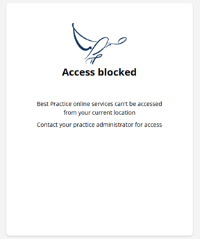 The geolocation-based access verifies users of Best Practice software are logging in from within Australia or New Zealand. This is the recommended minimum setting for customers using Best Practice Mobile or Best Health Booking.