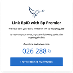 - Enter the email address that you want to use to log in to your Best Practice ID. An invitation link will be sent to your email and you will be shown a one-time invitation code. Copy the code by clicking on the copy icon, or write it down.