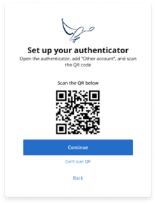 NOTE If you experience issues with scanning the QR code, you can click 'Can't scan QR' and type in the account name and secret key.