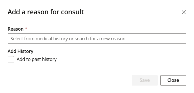 Click Add a reason to add a new reason for consult or select an existing reason from the medical history list. Click Add to past history to add the reason for consult to the Medical history.