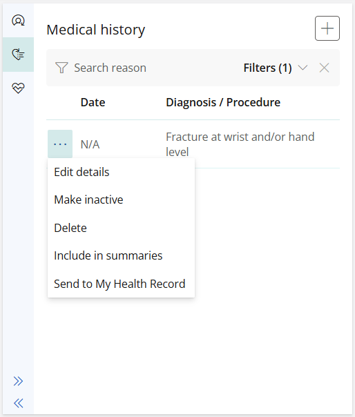 From the Medical history tab, you can add, edit or delete medical history entires.