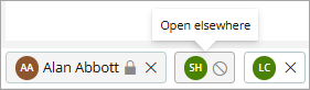 The patient tab will display with a blocked icon when the record is Open elsewhere.