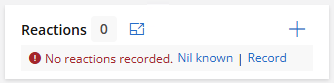 If no reactions have been recorded for the patient, click Nil known or Record to add reactions.