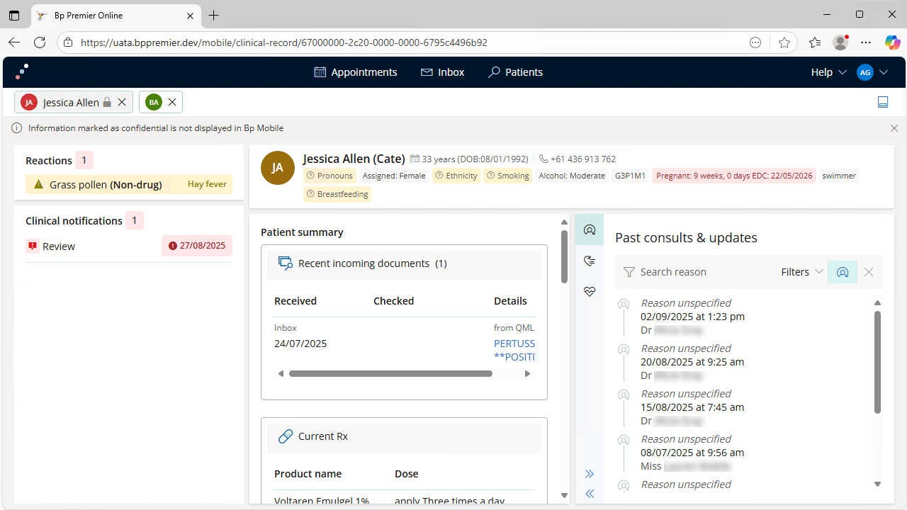 NOTE Information that is marked as Confidential in Bp Premier will not be displayed in Bp Mobile.