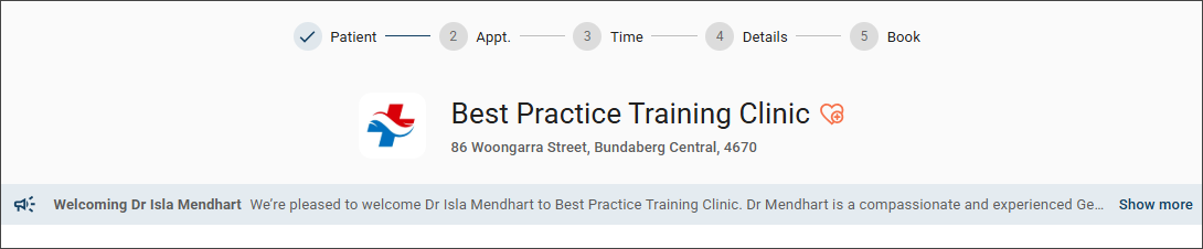 Below is an example of a practice notice banner that a patient would see when booking online.