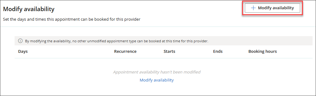 - Click + Modify availability or the pencil icon if you already have modified availability for this appointment.