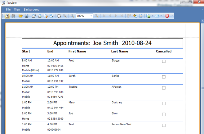 - A Print Preview of the Daily Appointment List will be displayed for the selected date.