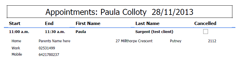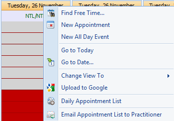 In the Appointment Book within the required practitioners calendar right click on the date header for the date to send the list relating to, e.g. tomorrows date.