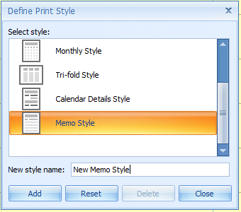 - Memo Style — Prints a more detailed summary of Appointment Start and End time, Client Name, Location, whether the appointment is a recurring one and any notes relating the appointment. NB. You must first select the Appointment you wish to print before going into Print Options.