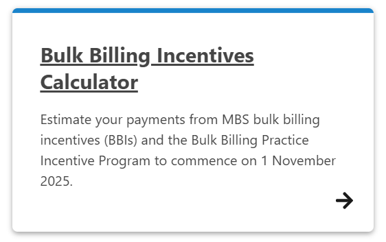 See the Australian Government Department of Health, Disability and Ageing website for further information on changes to Bulk Billing, and the introduction of the Bulk Billing Practice Incentive Program, in place from 1 November, 2025.