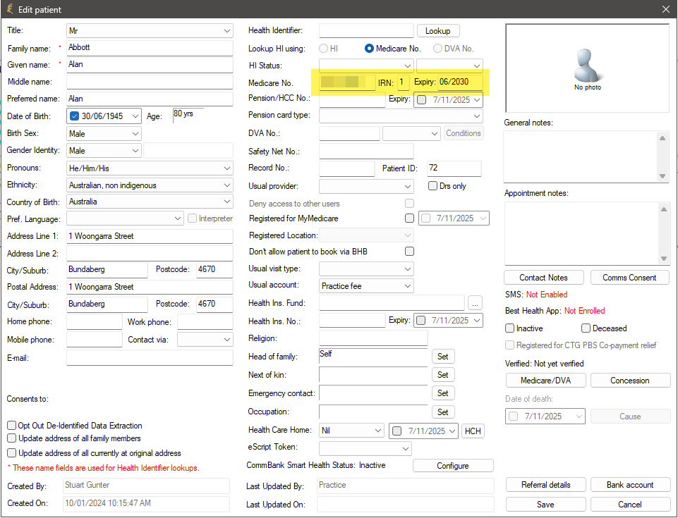 - To verify a patient's Medicare details, select the patient and click Verify. Bp Premier will connect to Medicare and verify the patient online.