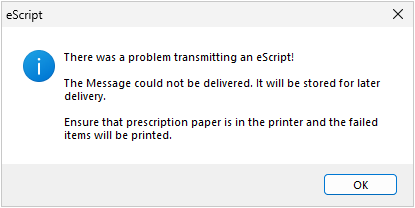 Ensure that prescription paper is in the printer and the failed items will be printed.
