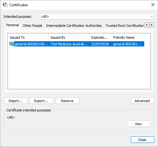 - Cross reference your thumbprint noted from the eRx Setup utility earlier to locate the correct certificate. When you’re confident you have the correct certificate, check the Valid to field for the certificate expiry date.