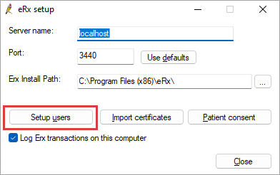 - From the eRx Setup utility, click Setup Users. The eRx Users screen will display.