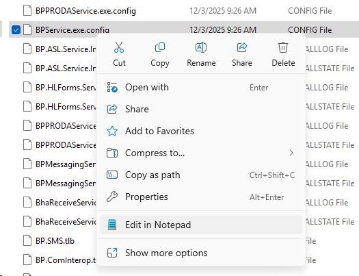 - BPService.exe.config in C:\Program FIles\Best Practice Software\BPS\BP Support.