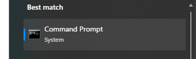 Open the Command Prompt tool by searching 'Command', 'CMD', or 'Command Prompt' from the task bar and selecting Command Prompt.