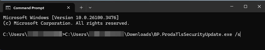 Run the PRODA TLS Security Update Utility Silently