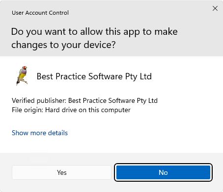 - Click 'Yes' if User Account Control asks you to allow Best Practice to make changes to your device.