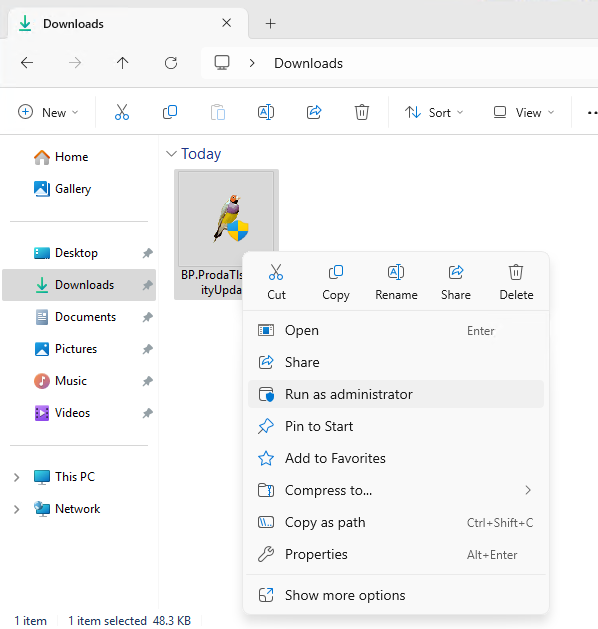 - From your Downloads folder, right-click the downloaded utility and select Run as administrator. The utility will launch.